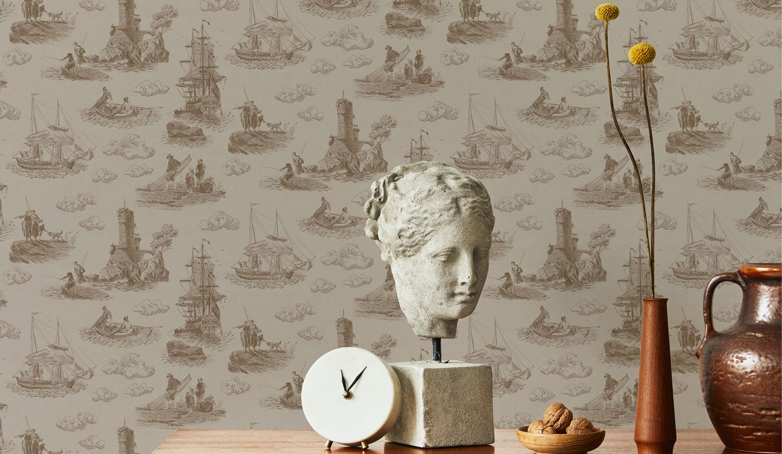 Не забываем, что английский стиль в интерьере зародился в эпоху расцвета барокко. Пышность, изящество, богатство, благородство и некая история должны читаться в каждой детали. Английский стиль эклектичен, а значит в нём может быть всё и сразу. Растительные сюжеты на стенах, декоративных подушках и шторах, коллекция снимков с ботанической тематикой или даже бабочек в рамках, географические старинные карты, вырезки из газет и журналов, старые исторические или семейные фотографии. Здесь же можно встретить такие экзотические «экспонаты» как африканские маски, бусы, веера, античные греческие вазы, восточные ковры, металлическую персидскую посуду (не забываем о традиционном британском и китайском фарфоре). Так же приветствуются живопись и гобелены в резных декоративных рамах.