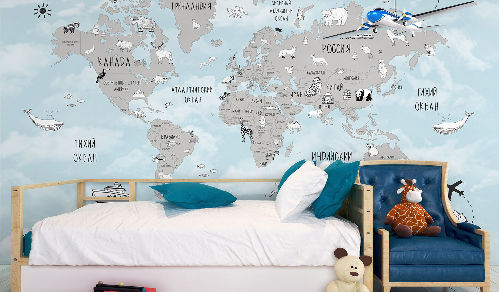 Вы обязательно подружитесь с этими забавными героями. Милые зверюшки живут в своем маленьком городе, в лесу, путешествуют на воздушных шарах и велосипедах, самолетах. Также сюда входят новые детские карты мира. Все дизайны выполнены в нескольких цветовых вариациях, чтобы вы могли подобрать гармоничный вариант для вашего проекта комнаты.