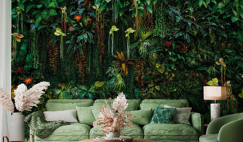 Одним из самых явных интерьерных трендов этого года является озеленение: «живые» стены, принты с изображением пальмовых листьев, папоротника, лиан на обоях и текстиле. И это не удивительно, ведь многим хочется сбежать подальше от бетонных городов в свой личный оазис уюта и комфорта.