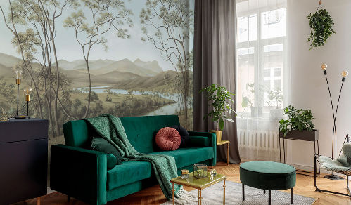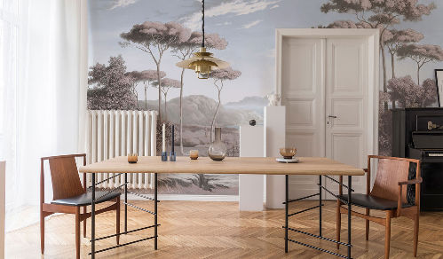 «Sacramento» - это 7 заветных сюжетов с монументальными пейзажами природы. Величественные и гордые леса в стилистике живописи 18-го века займут достойное место в интерьере. Композиция изображения построена так, что добавляет иллюзии свободного пространства, голубые небеса визуально приподнимут потолок помещения.