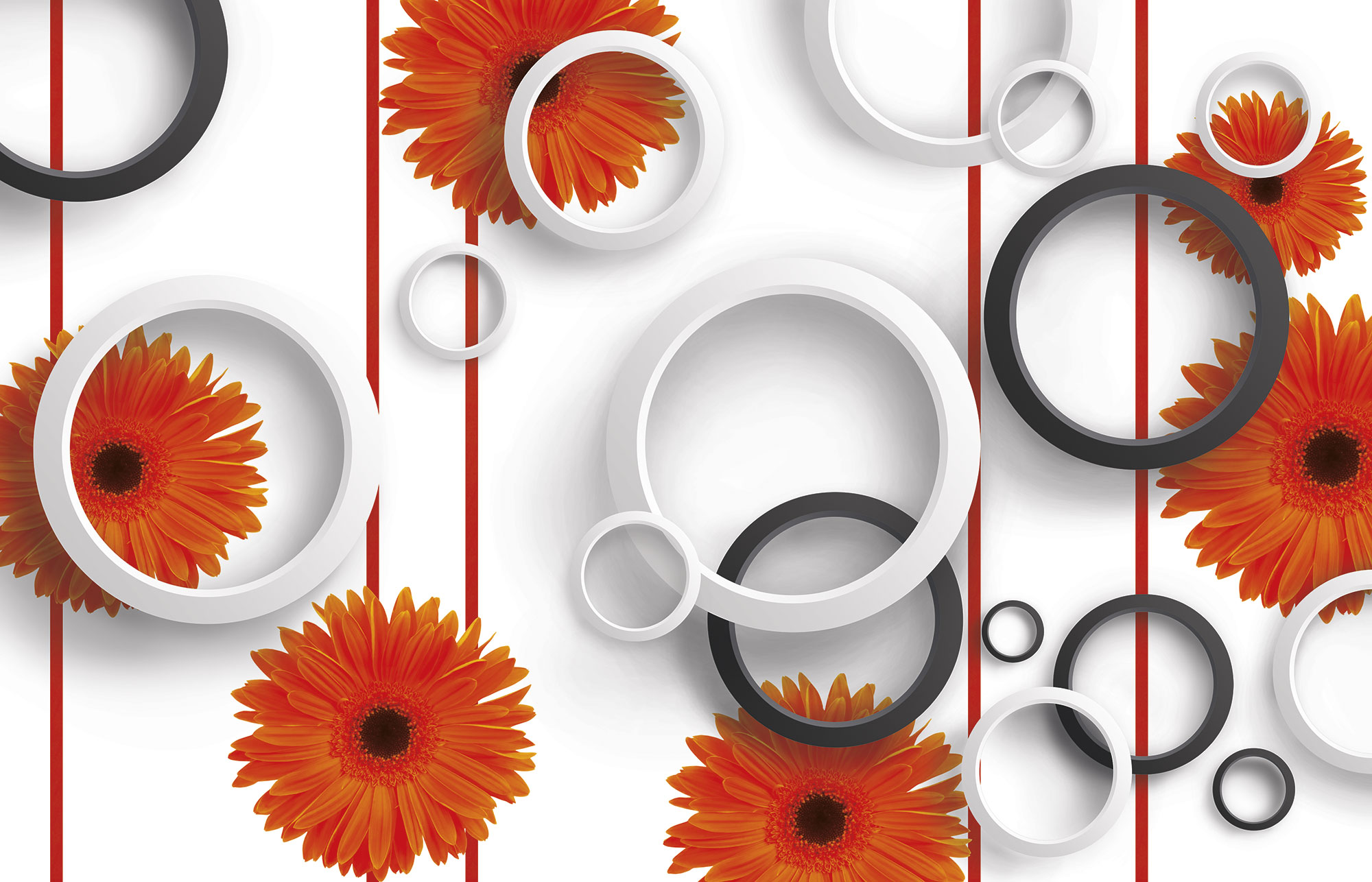 Оранжевые цветы и черно-белые круги