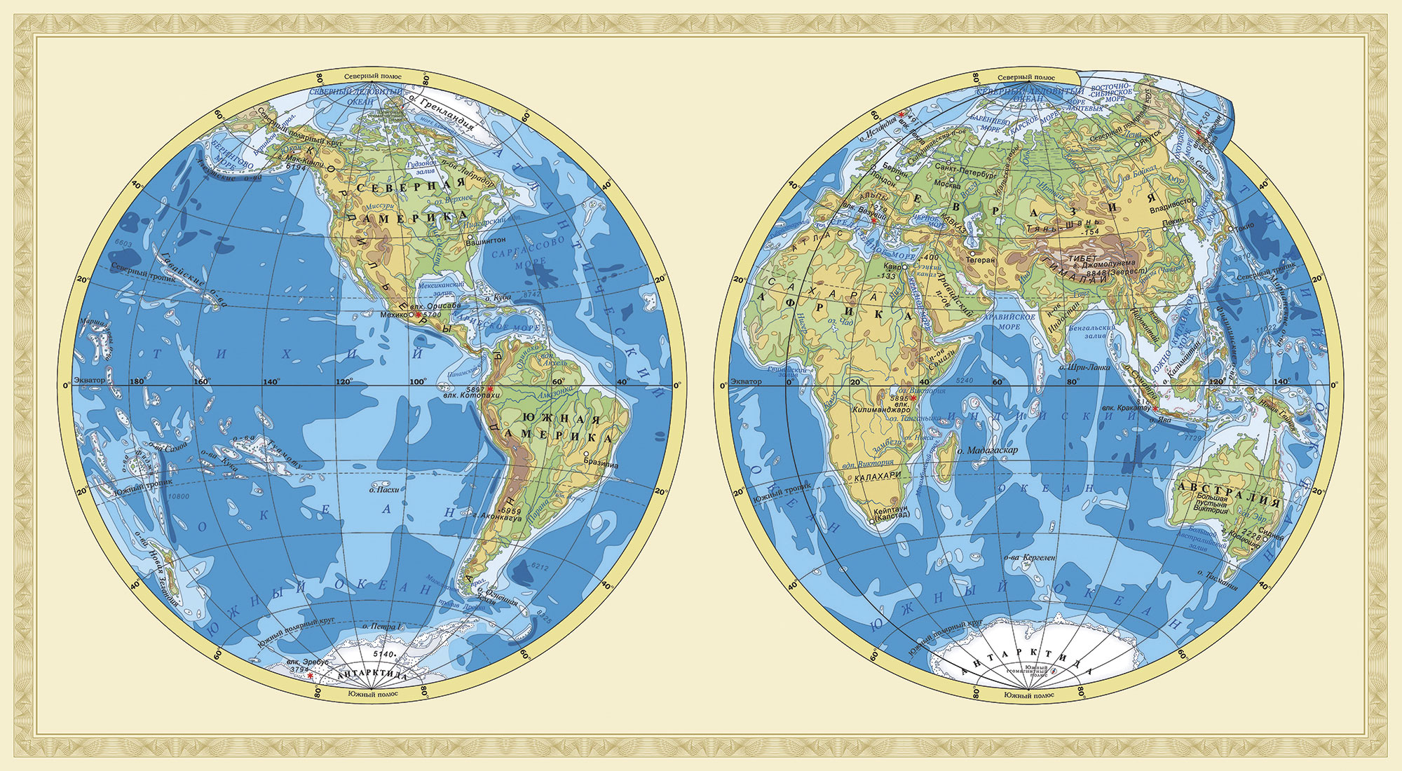 Карта мира с полушариями
