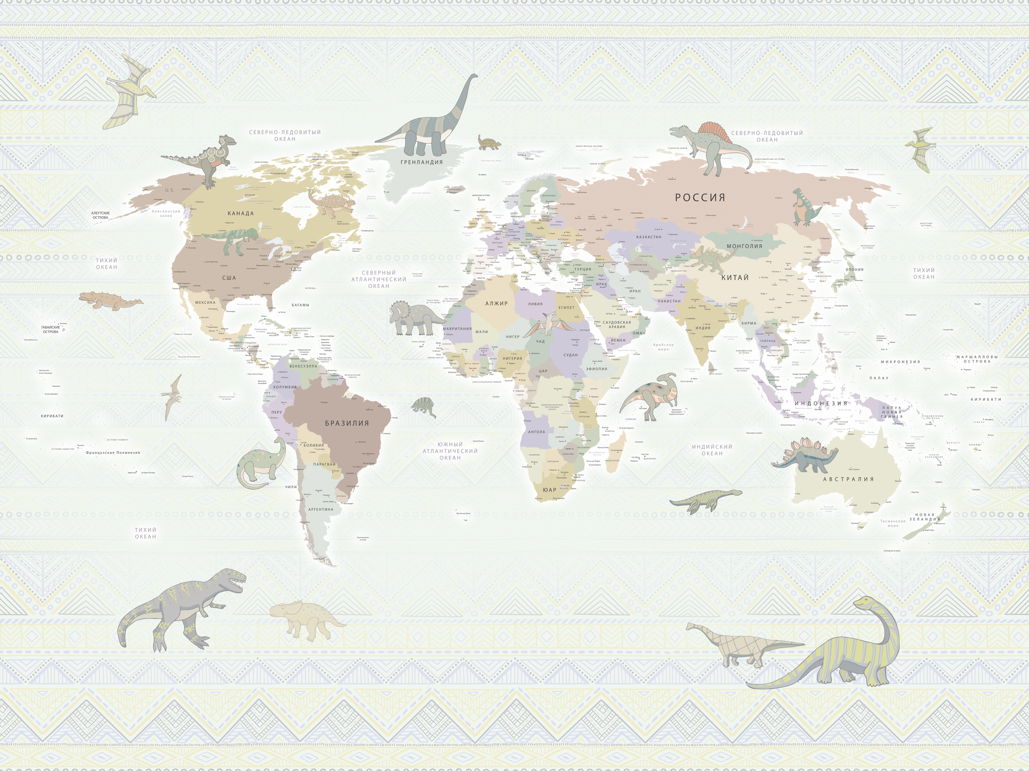 Карта мира - Динозавры