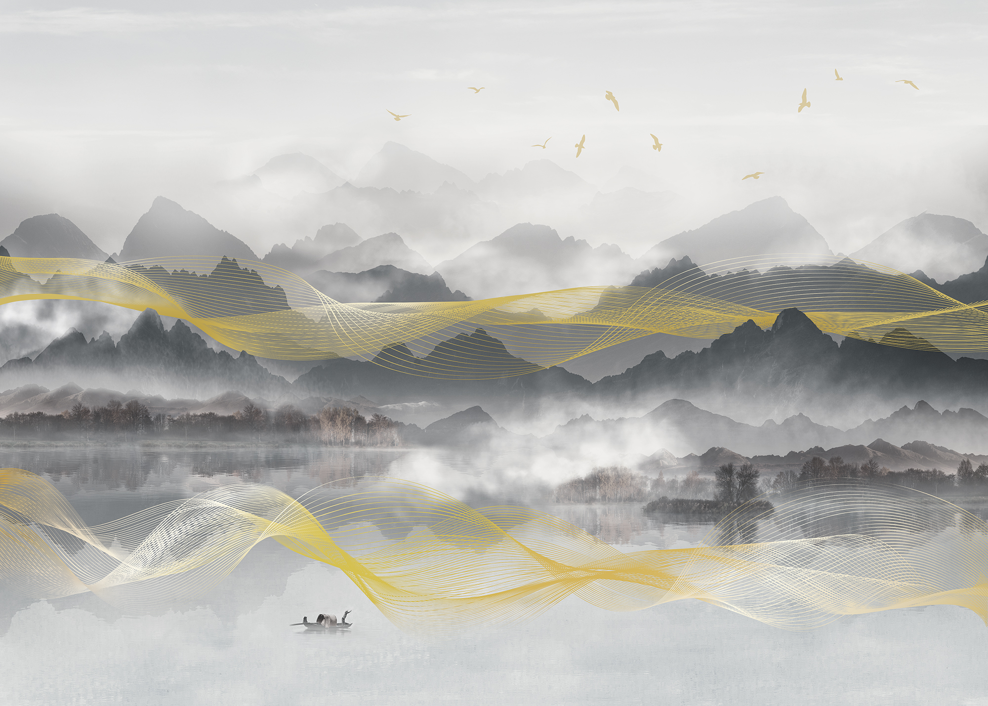 Gold and grey mountains
